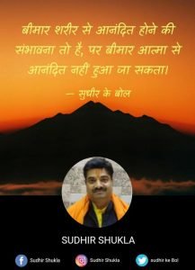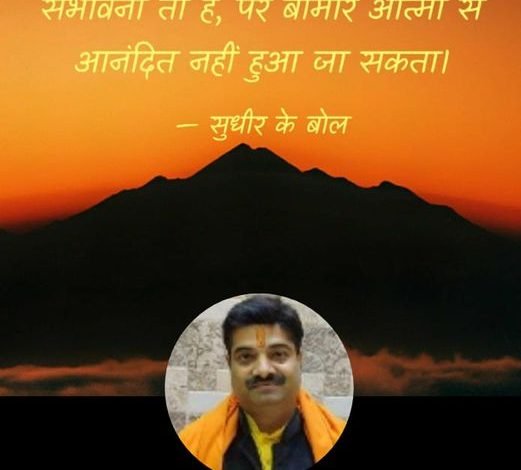 सुधीर के बोल:- बीमार शरीर से आनन्दित होने की सम्भावना तो है पर बीमार आत्मा से आनन्दित नही हुआ जा सकता