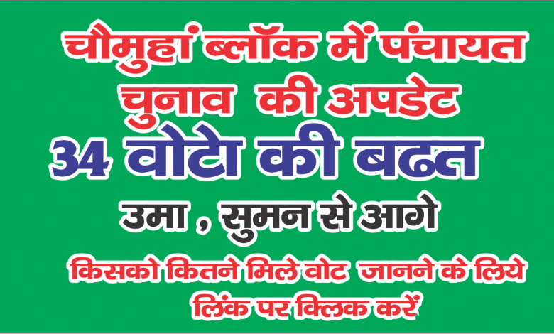 ब्लाॅक चैमुहां की ग्राम पंचायत तरौली जनूबी मे अब तक दो राउंड की मत गणना हो चुकी है। जिसमें उमा पत्नी हरि सिंह 292 के साथ पहले स्थान पर है वही सुमन पत्नी रामवीर सिंह 258 वोटो के साथ दूसरे स्थान पर है तीसरे स्थान पर रेखा पत्नी राजकुमार 150 वोट लेकर मामले को त्रिकोणीय बनाने का प्रयास कर रही है। अभी मोहल्ला जाटवान व उसके नजदीक के क्षेत्र की मतपेटीयंां खुली है। तीनो प्रत्याशीयों मे मामला कडा होने सम्भावना है। हार जीत का फासला ज्यादा रहने की सम्भावना कम ही है।
