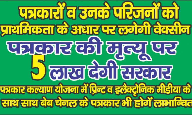 यूपी में कोरोना से बचाव के लिए पत्रकारों और उनके परिवारों को लगेगी वैक्सीन, पत्रकार की मृत्यु पर 5 लाख देगी सरकार
