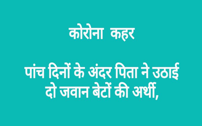 पांच मई को राजेश की तबीयत ज्यादा खराब हो गई। परिजन जब तक उसे अस्पताल ले जाते, उसने घर पर ही दम तोड़ दिया। एक ही घर में पांच दिन के अंदर दो जवान बेटों की मौत से पूरे गांव सन्न रह गया। दोनों बेटों की मौत के बाद पिता सिद्धू पूरी तरह टूट गए। वह बार-बार रोते हुए बस यही बोल रहे हैं कि भगवान किसी को भी ऐसा दिन ना दिखाए।