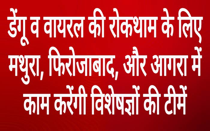 डेंगू व वायरल की रोकथाम के लिए मथुरा, फिरोजाबाद, और आगरा में काम करेंगी विशेषज्ञों की टीमें