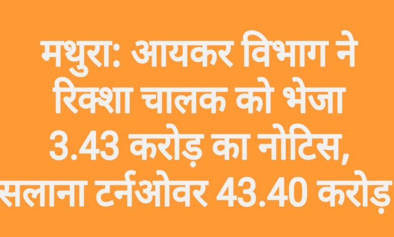 मथुरा: आयकर विभाग ने रिक्शा चालक को भेजा 3.43 करोड़ का नोटिस, सलाना टर्नओवर 43.40 करोड़।